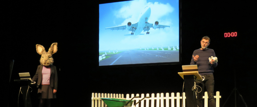 de Frédéric Ferrer • avec la complicité d’Hélène Schwartz pour mener l’enquête & penser lapin • avec Frédéric Ferrer & Hélène Schwartz • régie générale & construction Paco Galan • accessoires & scénographie Margaux Folléa • costumes Anne Buguet • masques Sébastien Baille & Einat Landais