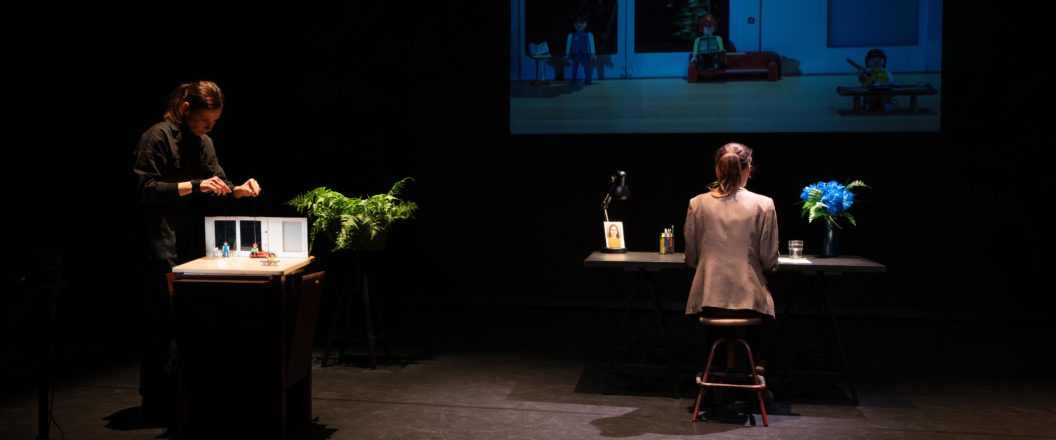 Pourquoi Claire Lagrange ne parle-t-elle plus ? Dans cet établissement coupé du monde et hors du temps, en lisière d’une forêt profonde, deux habitués observent cette femme récemment arrivée, qui peint sans un mot. Autrice et metteuse en scène belge, Céline Delbecq trace avec sensibilité l’histoire d’une femme tout ce qu’il y a de plus ordinaire et adaptée qui bascule. En s’appuyant sur des figurines de Playmobil dans un décor miniature, elle apporte humour et distance à ce récit qui interroge l’irruption de la psychose et sa cause. Sans être dans l’explication rationnelle, sa pièce adopte le rythme contemplatif de ses personnages et cultive un doux mystère.