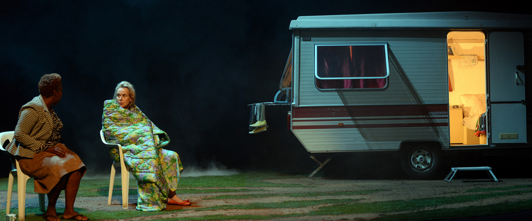 Duo tragi-comique pour deux femmes, une caravane et deux chaises en plastique, la nouvelle création de Pascale Henry donne à entendre toute la complexité des rapports humains portée par une langue à l’apparente trivialité. Une pièce sensible où la drôlerie déborde le drame.